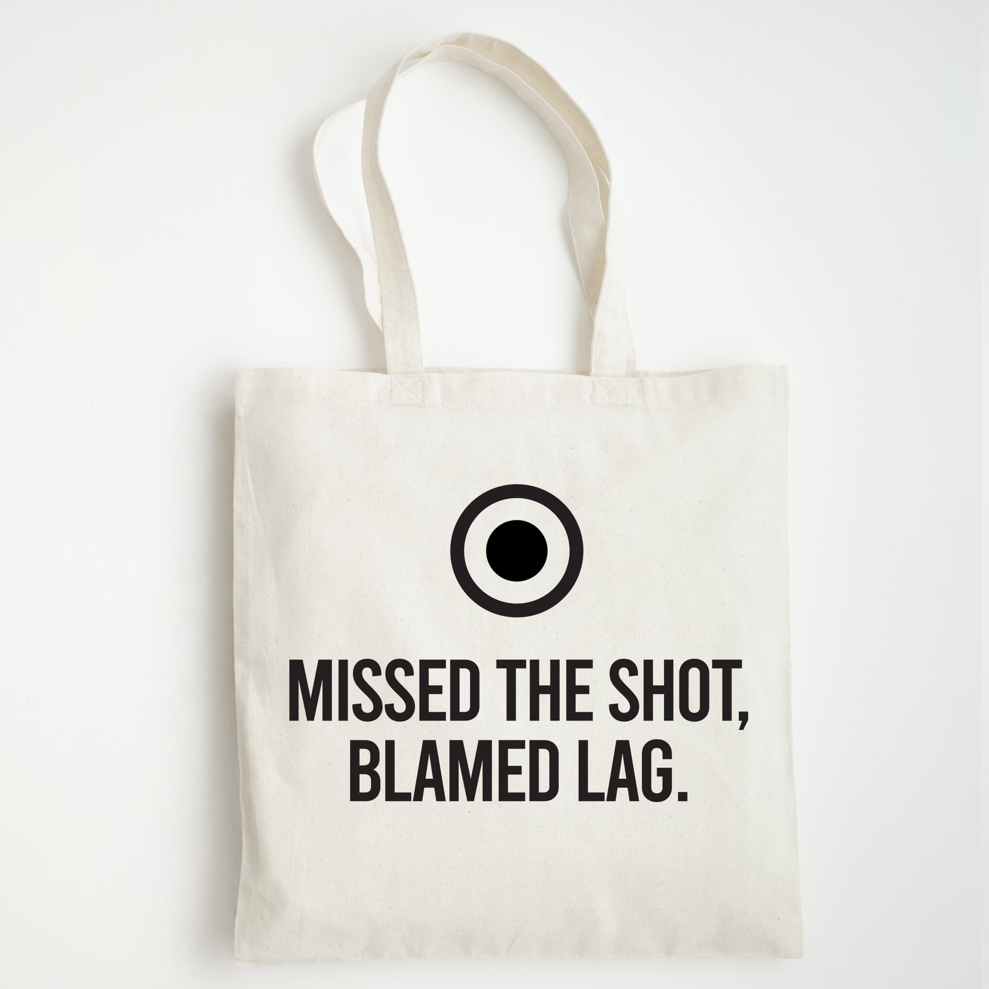 Funny Slogan Tote Bag – “Missed the Shot...Blamed Lag”