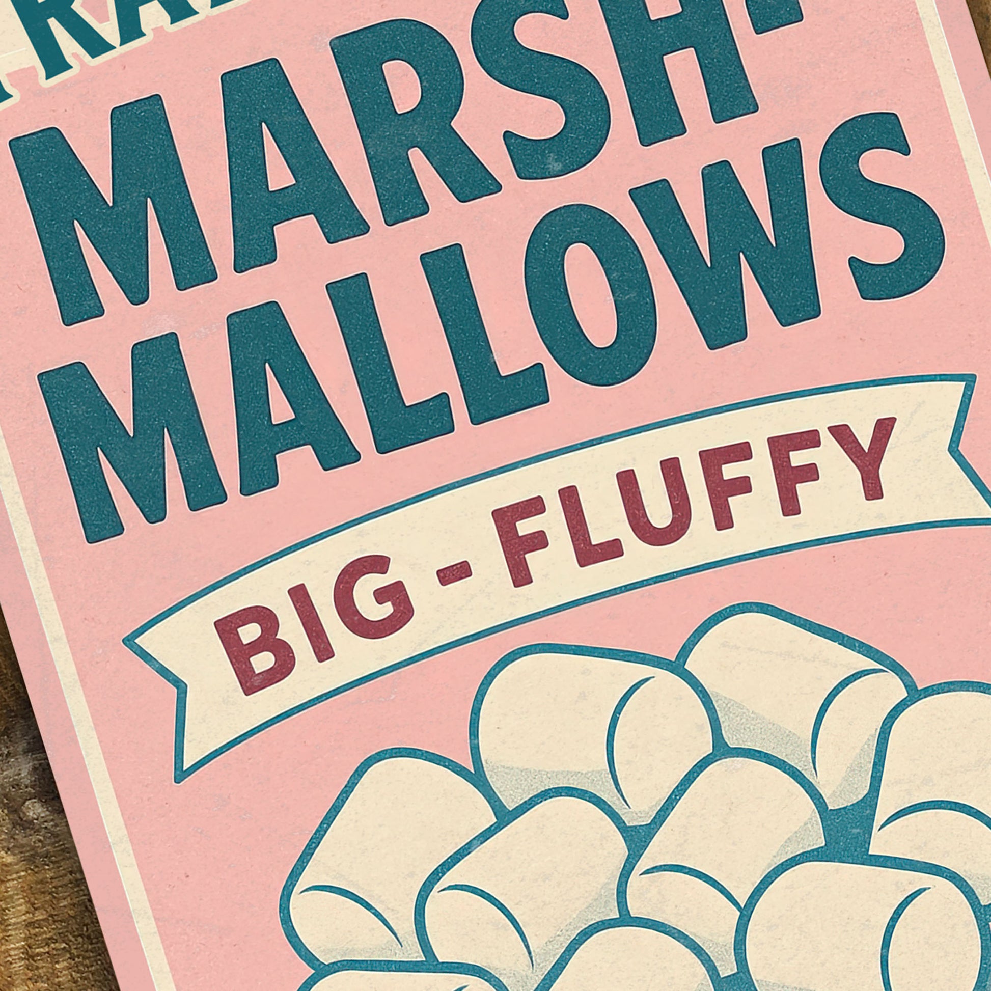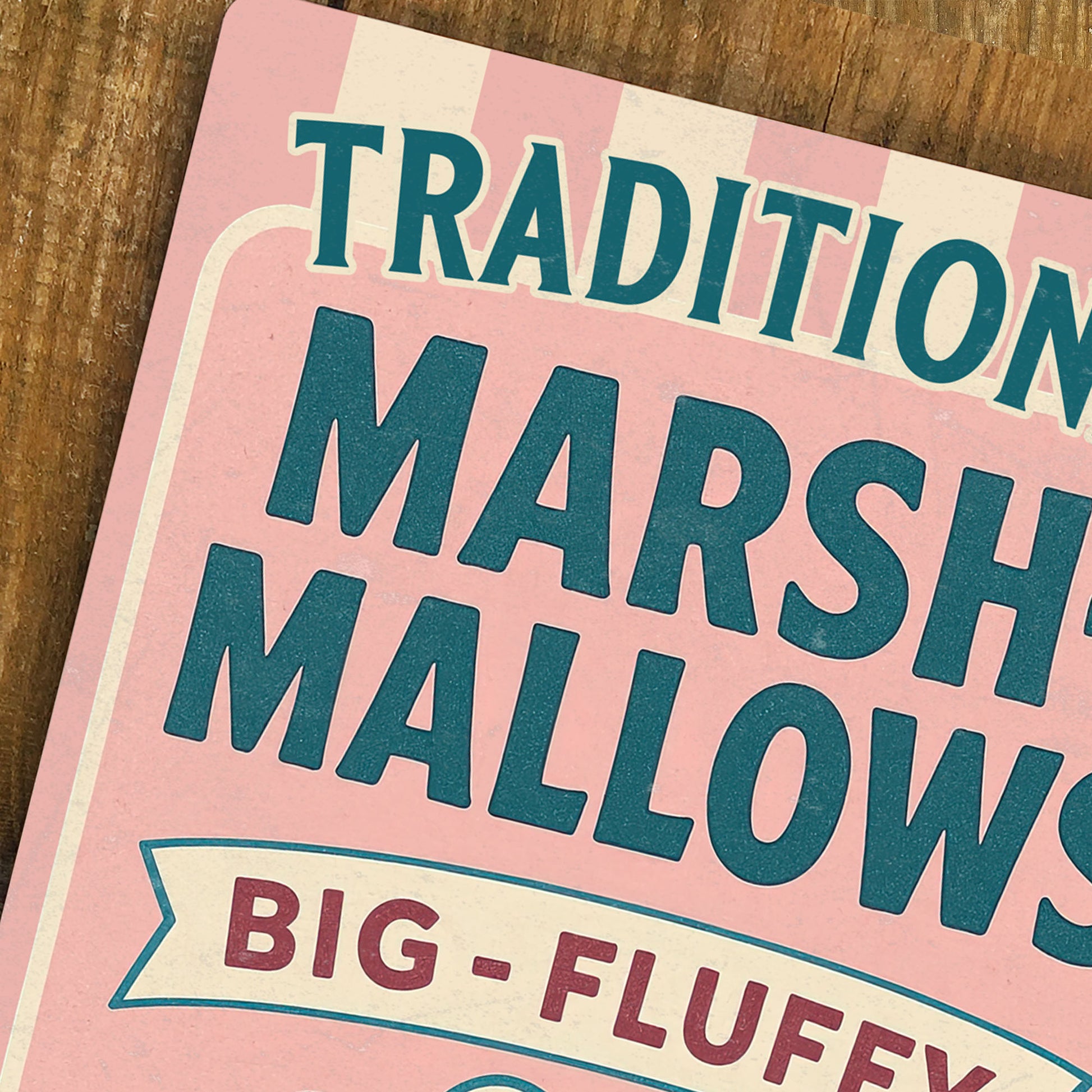 Marshmallow Vintage Metal Wall Sign - Pink Traditional Wall Art - 200x305mm