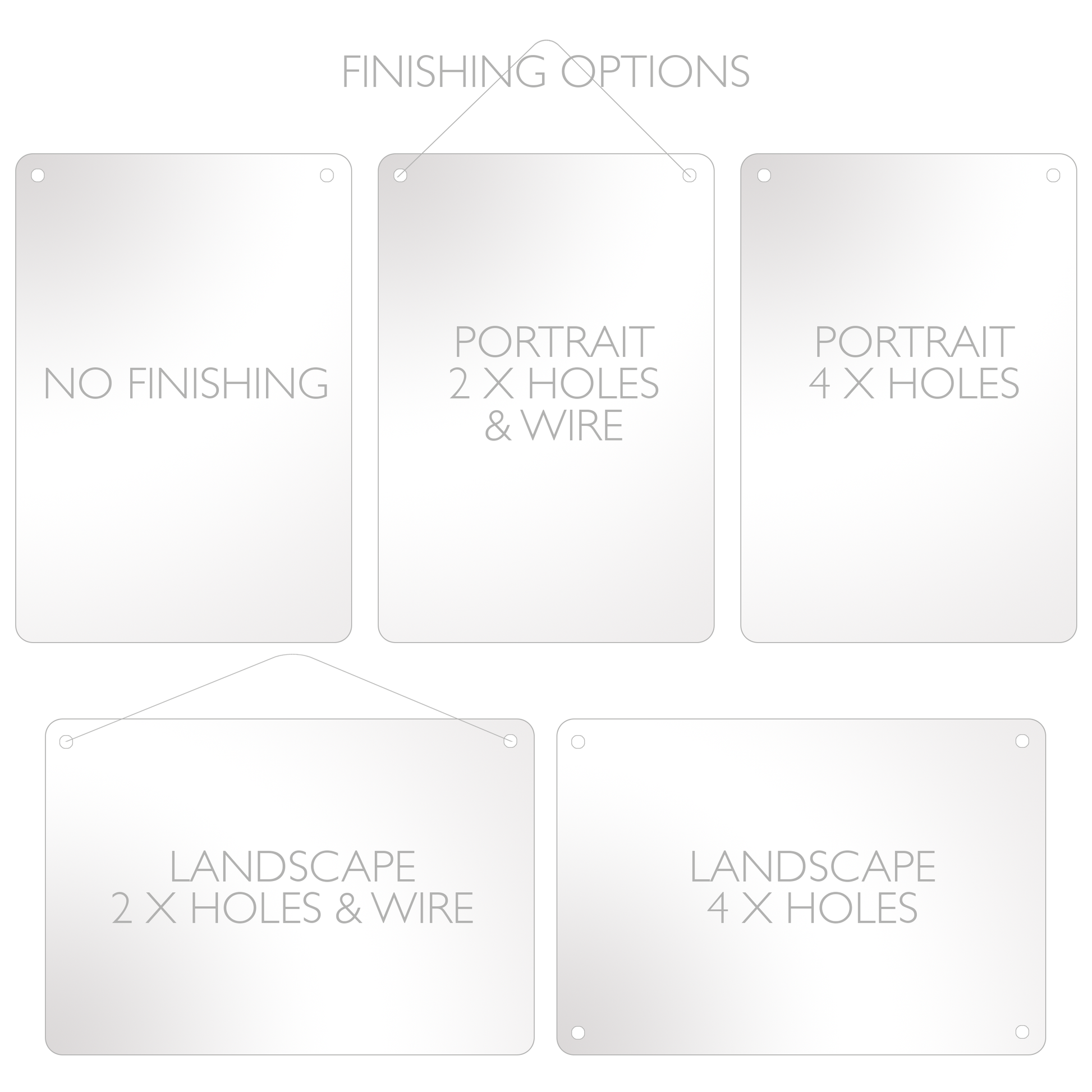 • 4 x Corner Drill Holes (Supplied with a corner drill hole in each corner to allow for screwing to a wall).