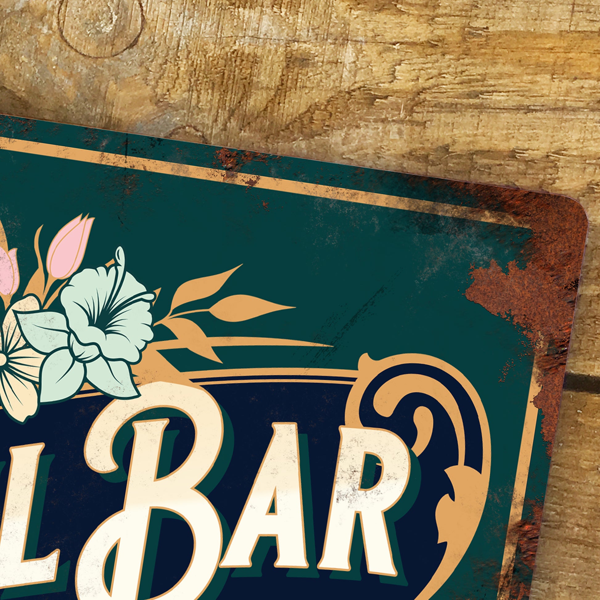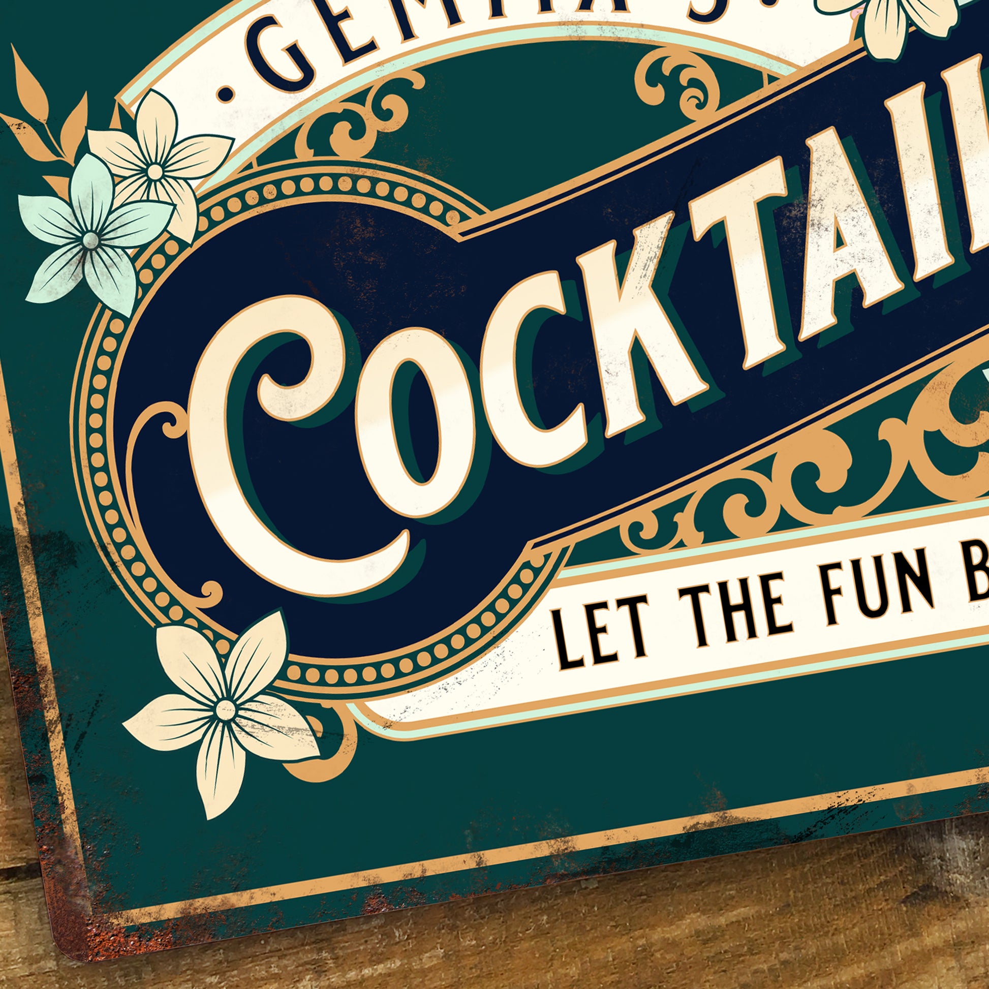 This Vintage style metal sign is a great addition to any Cocktail Bar, Drinks Trolley, Home Bar or outside garden bar area. The sign is made from aluminium metal and is printed using dye sublimation inks which makes it completely waterproof. Personalise the sign your choice of Family name or a person's first name.