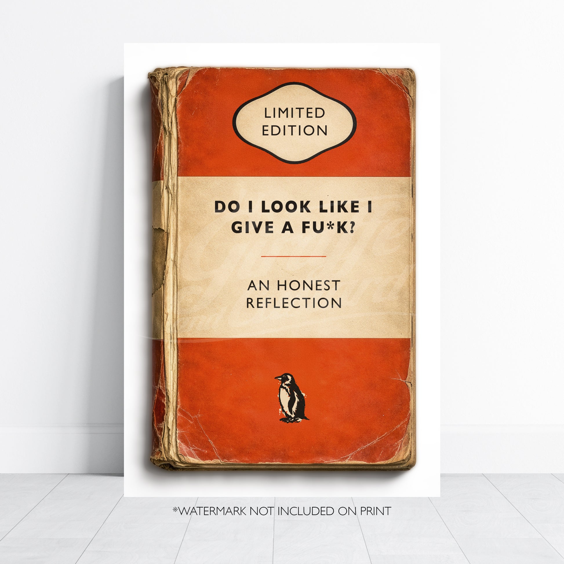 Make a bold statement with this high-quality vintage-style art print featuring the unapologetic quote: “Do I Look Like I Give a Fu*k – An Honest Reflection.”* Designed to resemble a classic book cover, this artwork blends old-world charm with modern attitude—perfect for those who appreciate humour, honesty, and a touch of rebellion in their décor.